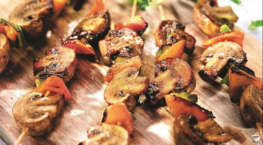 Если у вас есть друг-вегетарианец, не стоит оставлять его голодным. Вы не поверите, но овощной шашлык — это тоже очень вкусно. Наверняка и сами умнёте пару кусочков в качестве гарнира к вашему «настоящему» шашлыку.