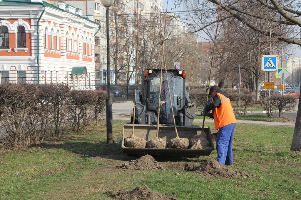 20 деревьев красного клена посадили на ул. Лейтейзена на участке между Красноармейским проспектом и ул. Демонстрации.