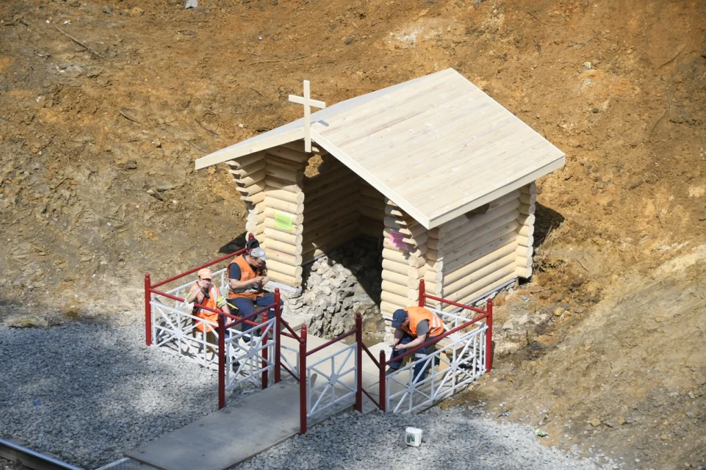 На спуске к железнодорожным путям в Малых Гончарах благоустроили и осветили родник. Территорию привели в порядок: положили плитку, установили новую лестницу и возвели сруб. Ранее пробы воды из источника подтвердили ее качество.