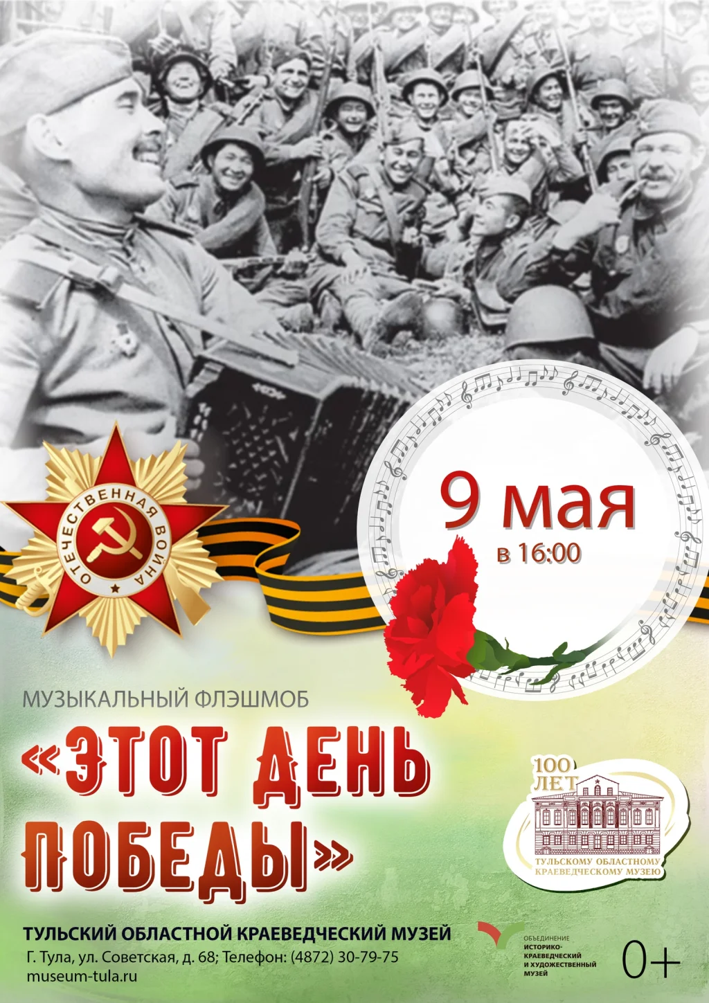 9 мая Объединение «Историко-краеведческий и художественный музей» приглашает всех желающих присоединиться к музыкальному флешбому «Этот День Победы». Мероприятие пройдёт в Тульском областном краеведческом музее.