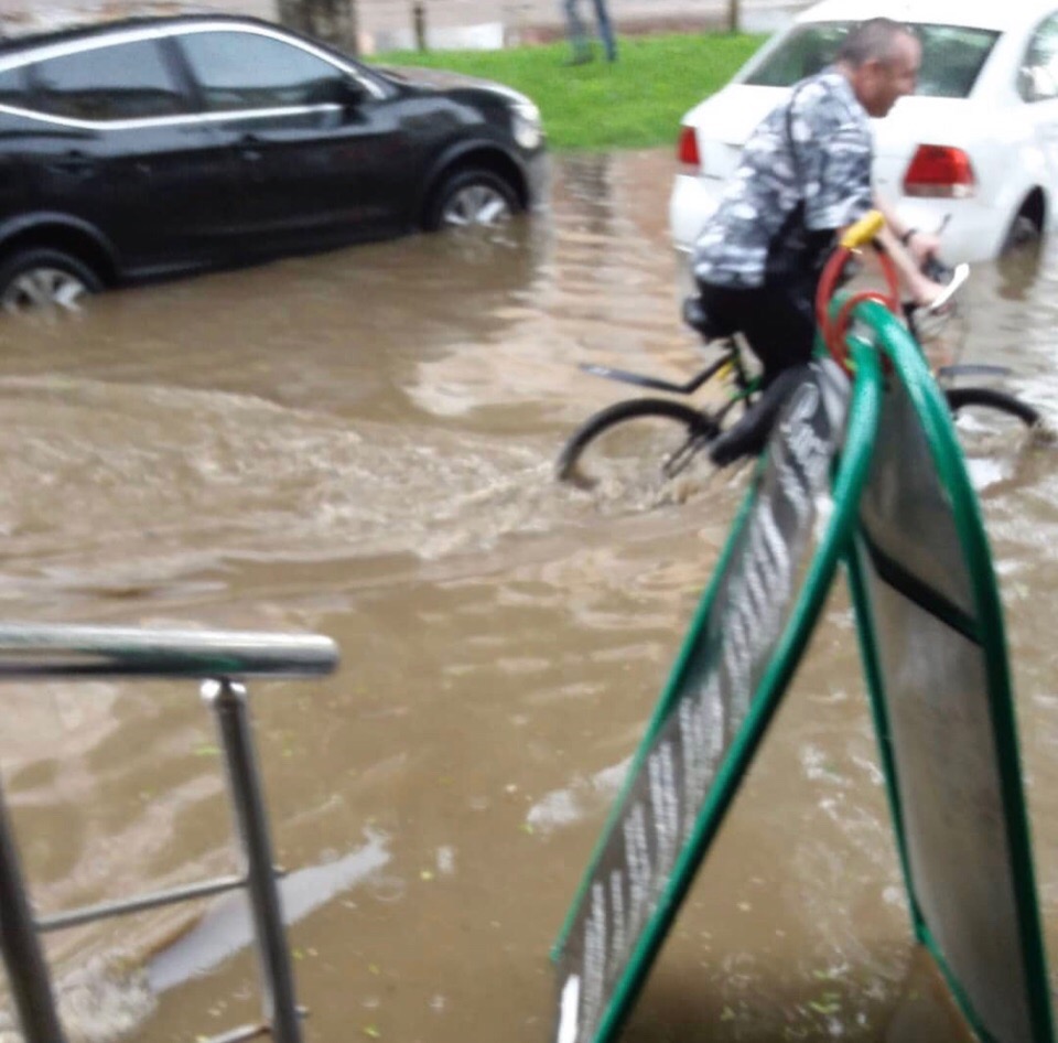 Прошедший накануне сильный дождь показал, что с ливневками в Туле по-прежнему не все в порядке. Грязные моря разлились во всех районах города, заставляя пешеходов почувствовать себя гимнастами, а автомобилистов — водителями моторных лодок.