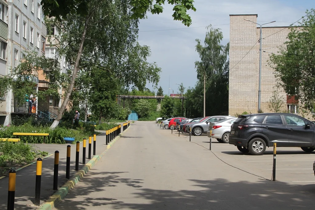 На территории были заасфальтировали проезды, пешеходные дорожки, расширена проезжая часть, установлены металлические столбики, скамейки, урны, ограждения безопасности, сделано освещение парковки.