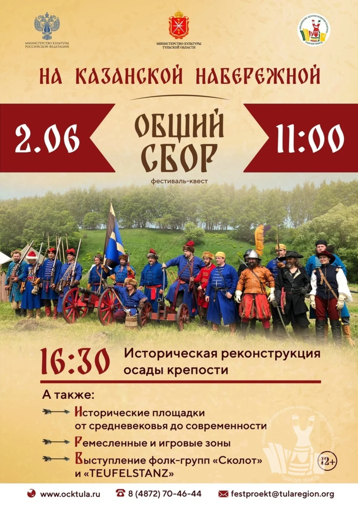 2 июня на Казанской набережной Тулы состоится фестиваль-квест «Общий сбор» по городам Тульской засечной черты. Мероприятие посвящено празднованию в 2020 году 500-летия Тульского кремля.