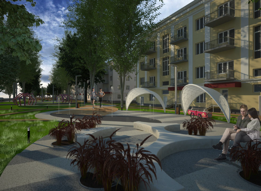 Ее коллега Тамара Романенкова в своем проекте предложила включить в общественное пространство площадки с возможностью заниматься на них, например, теннисом и другими видами спорта. Кроме того проект тульского дизайнера предусматривает несколько уровней светодиодного освещения, систему видеонаблюдения, велопарковку, зону фудкорта.