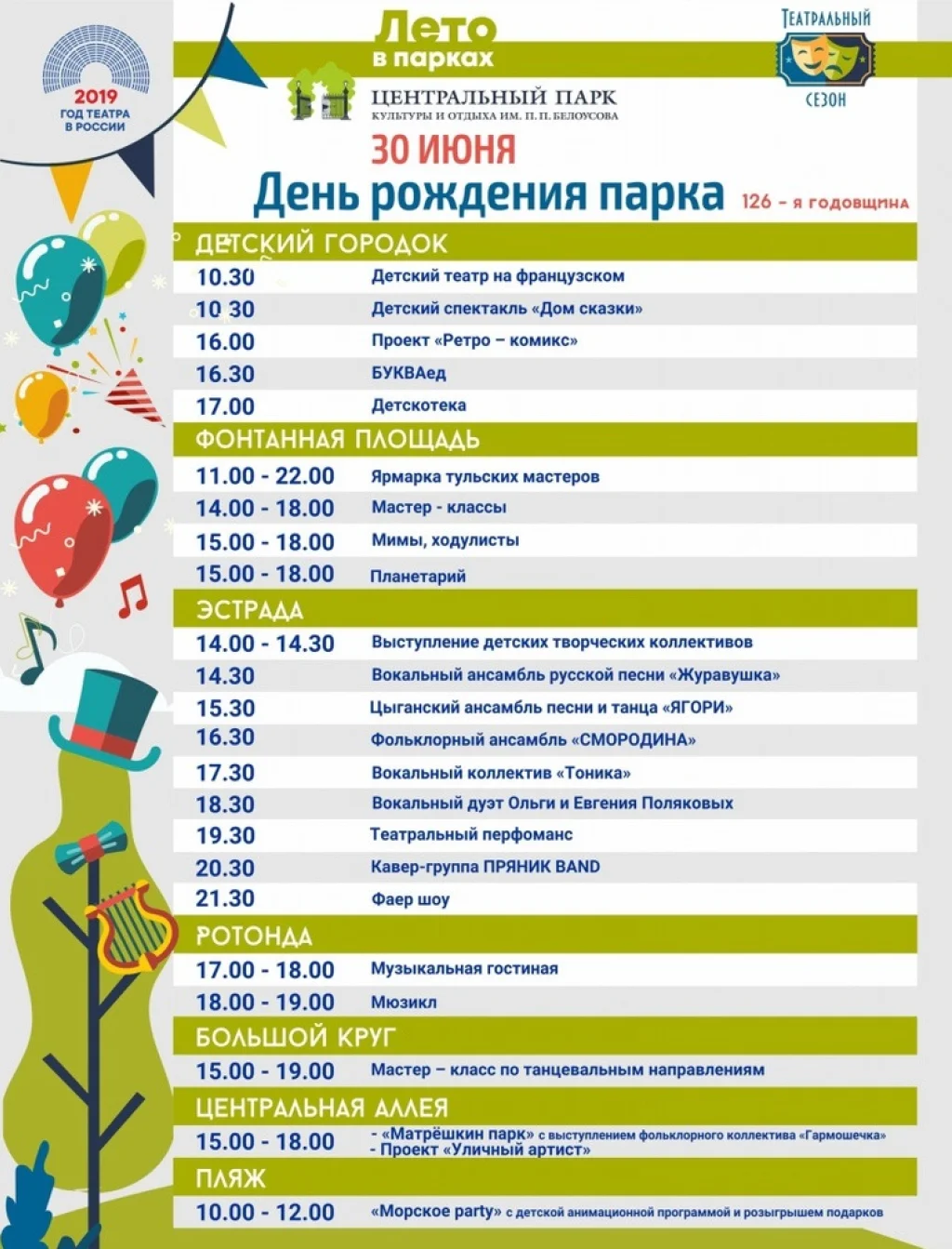 ЦПКиО им. П.П. Белоусова отметит день рождения. Программа