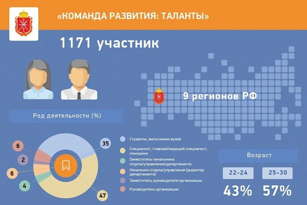 Всего была подана 1171 заявка. 43% кандидатов – в возрасте от 22 до 24 лет, 57% - от 25 до 30 лет.