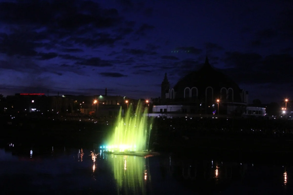 Эта феноменальная кульминация в завершении празднования 69-летия победы собрала тысячи туляков на набережной Упы близ ротонды и здания Музея оружия. Именно здесь установили плавучий фонтан и мощные прожекторы, подсвечивавшие струи воды, бьющие вверх. Струи фонтана меняли цвет и направление.