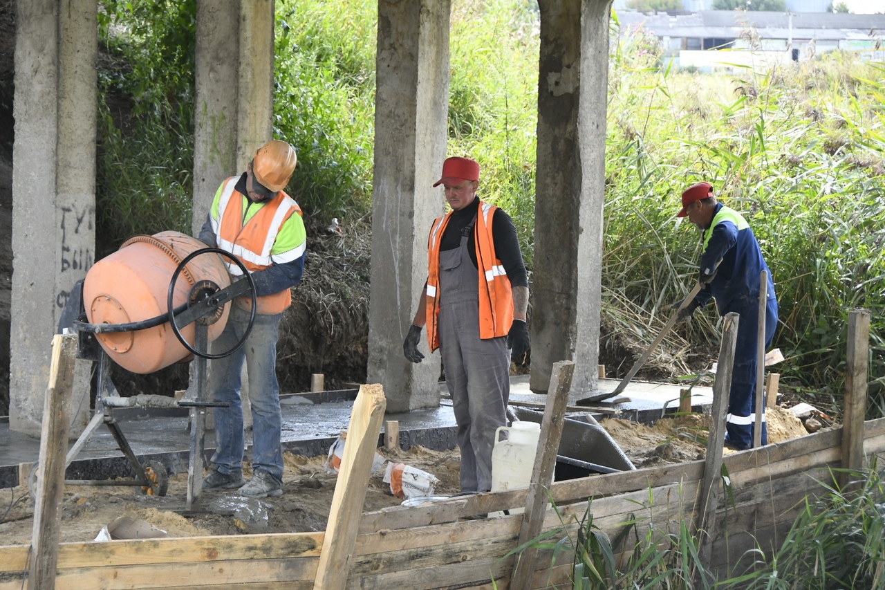 На первом участке моста на 50% смонтированы плиты. Ведутся работы по зачистке существующего фундамента под опорами, подготавливается опалубка, устанавливаются анкера, связывается арматура. На текущей неделе проведут работы по бетонированию ростверга. Подрядная организация заказала металл для укрепляющей конструкции, по мере поставки которого будет производиться сборка для последующего монтажа.