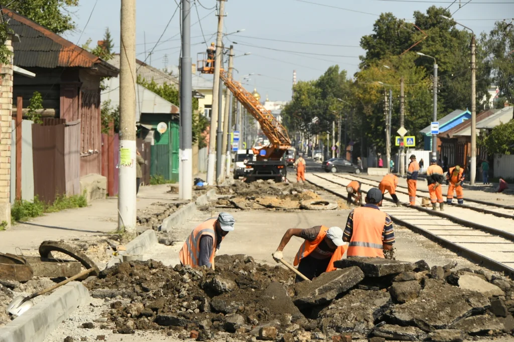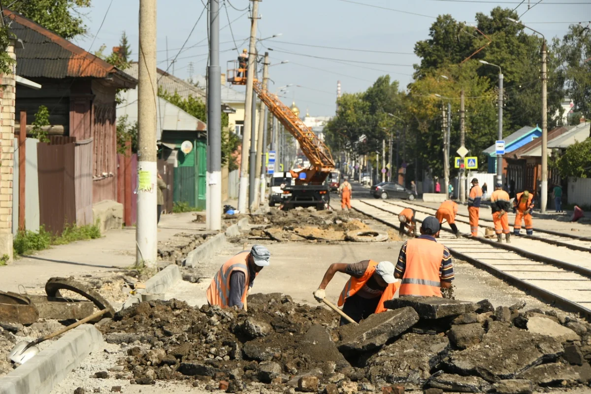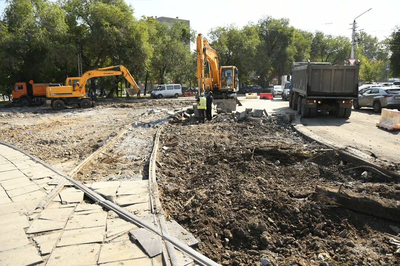 На ул. Оборонной уже проведена установка 126 м дорожного бортового камня, разборка 200 п. м плитки, разборка 100 п. м щебня, зачистка 120 п. м рельсов, засыпка 100 п. м щебня, устройство 200 м верхнего слоя межрельсового пространства. Рабогты в даннгом направлении продолжаются.