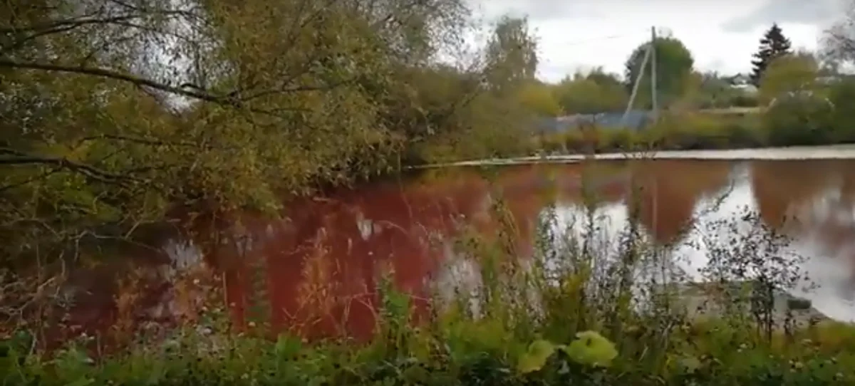 В тульском поселке вода в пруду порозовела