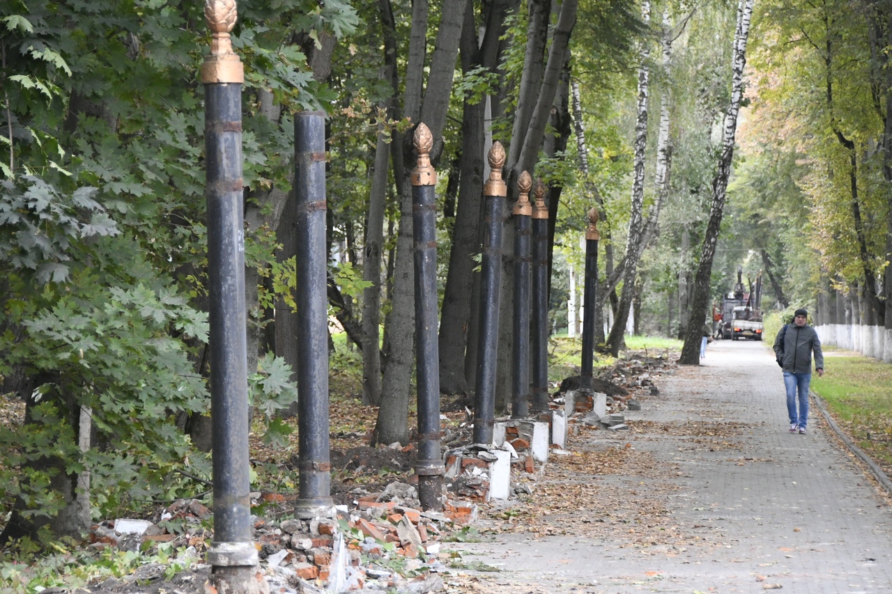 В Центральном парке Тулы ведутся ремонтные работы. На этот раз в парке обновляют ограждение со стороны ул. Первомайской.