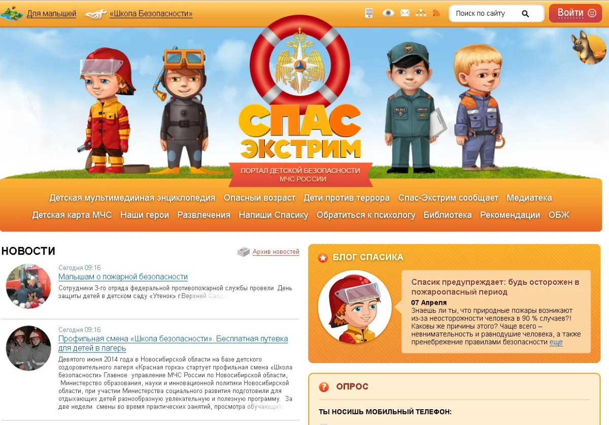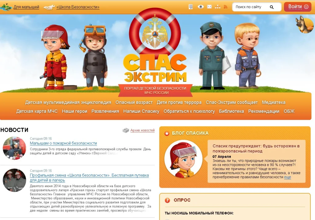 На специализированном сайте, посвященном вопросам детской безопасности, ребята смогут посмотреть интересные фильмы по правилам поведения при чрезвычайных ситуациях, попробовать себя в роли спасателей в игре, принять участие в увлекательных конкурсах, прочесть образовательные материалы в виде книг, буклетов и комиксов, написанные на доступном языке сотрудниками МЧС специально для детей.