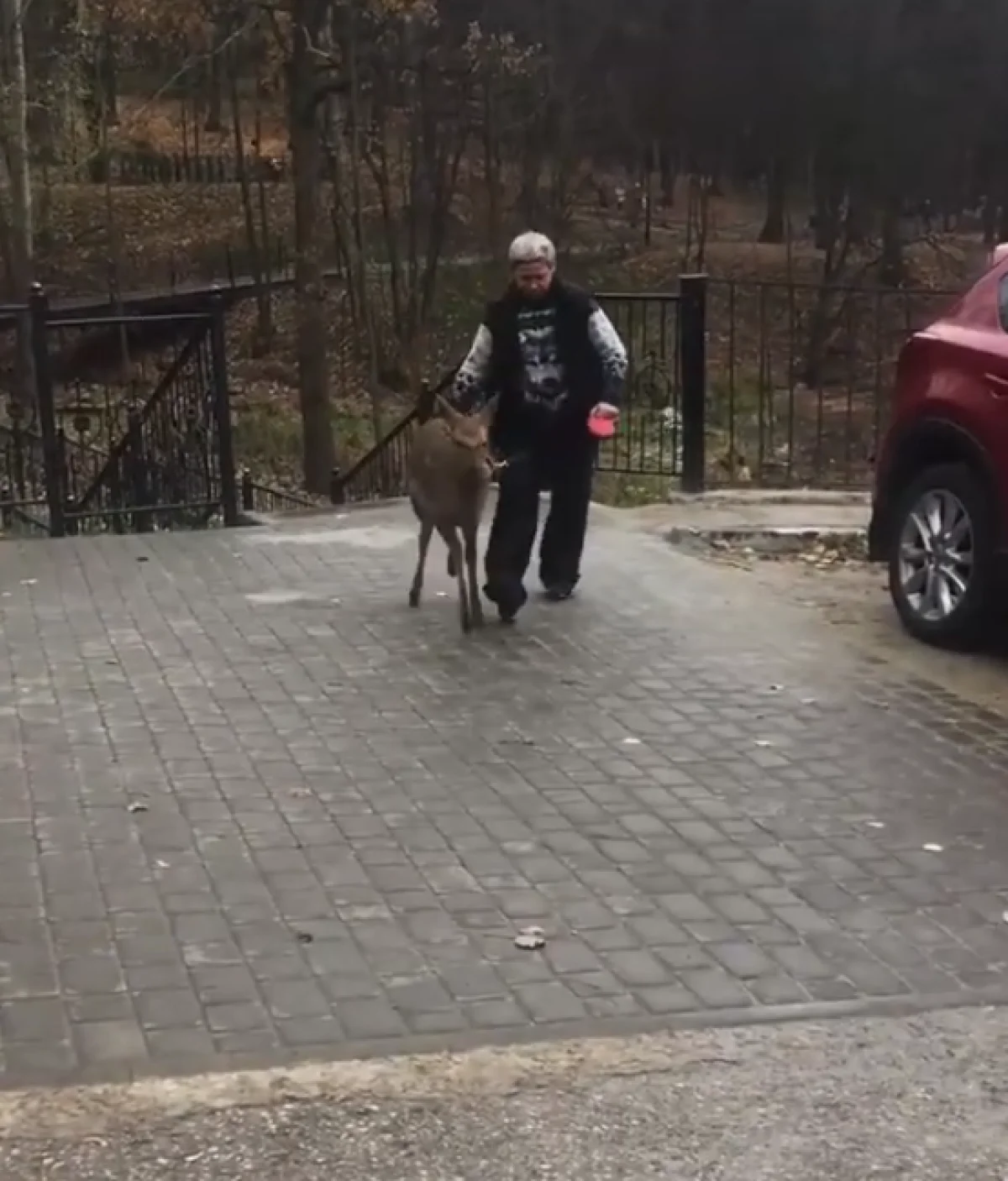 В соцсетях автор поста отметила, что женщина подвела олененка к своей машине, он туда запрыгнул как собака. По животному видно, что он ухожен, накормлен и не испытывает дискомфорта. Скорее всего, хозяйка выводит его на прогулку не первый раз.