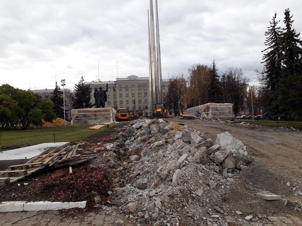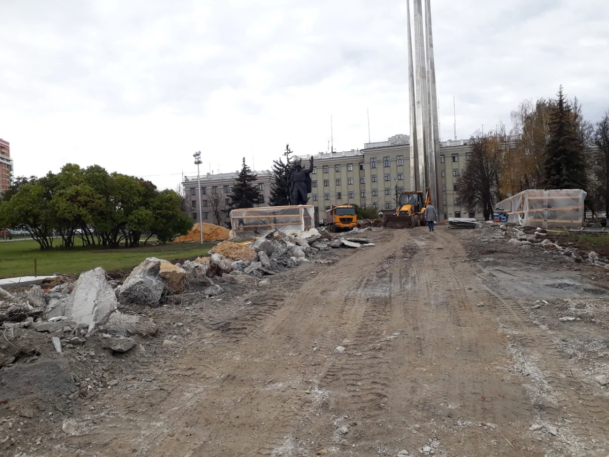В Туле на площади Победы проходят масштабные ремонтные работы. обновит свой облик. Задача подрядчика - к 75-летию Победы в Великой Отечественной войне заменить плиточное покрытие и сделать новое бетонное основание.