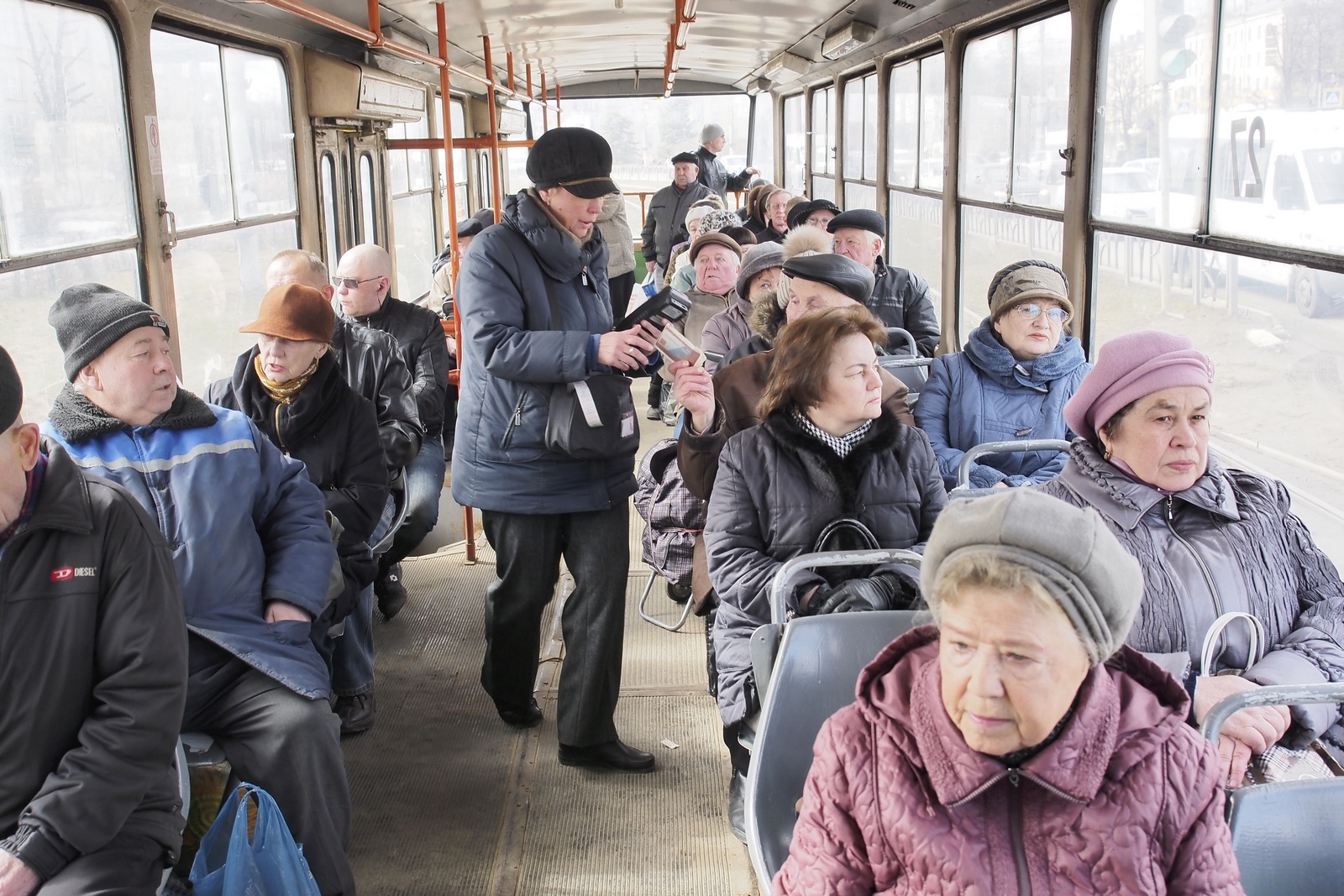 Интересный факт. Нам сейчас покажется весьма шокирующей строчка из «Правил проезда», табличка с которыми весела в каждом вагоне: «Красноармейцам и милиционерам запрещается провозить в вагоне винтовки с незачехлёнными штыками». Такие были времена, сам факт открытого провоза огнестрельного оружия в общественным транспорте тогда никого не удивлял и не смущал.