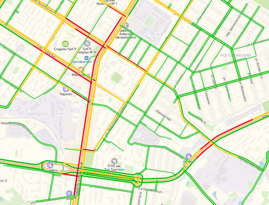Вечером 7 ноября Тула замерла в километровых пробках. Сложная дорожная ситуация наблюдается уже около часа на самых заполненных участках