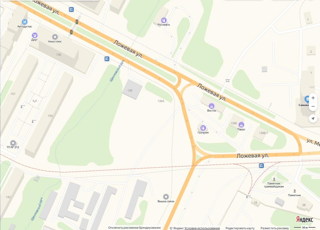 Теперь совершать маневр следует, двигаясь по улице Ложевой от улицы Металлургов, возле дома №145 по Ложевой. На этом месте сделан дополнительный разрыв дороги для совершения поворота или разворота транспортного средства, который находится до пешеходного перехода.