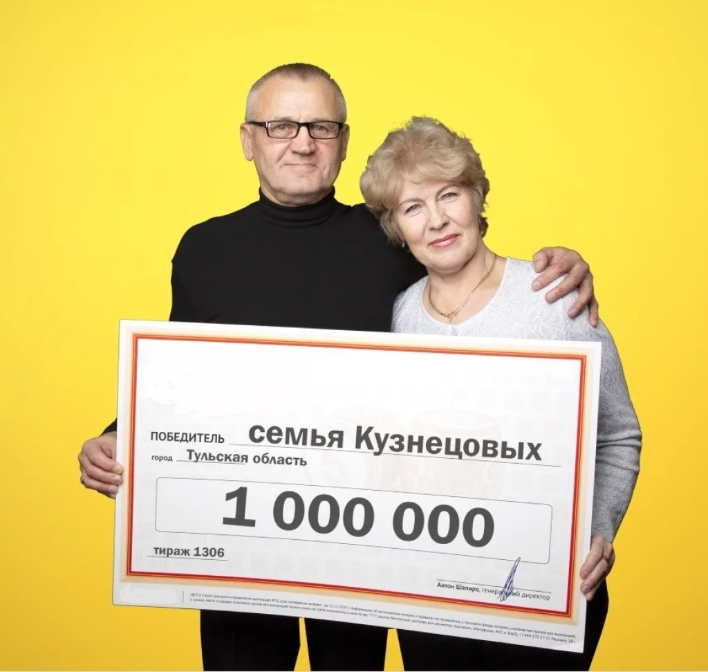 Жители Тульской области Виктор и Татьяна Кузнецовы выиграли в лотерею миллион рублей.