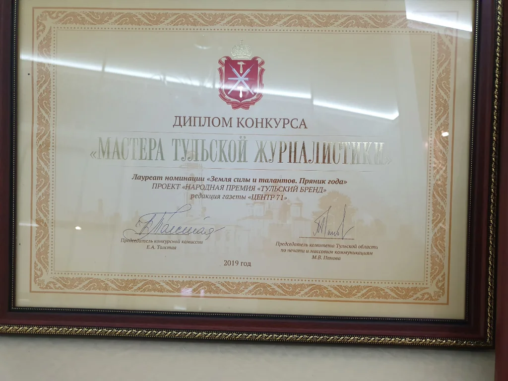 стал победителем в номинации "Земля силы и талантов. Пряник года". Жюри конкурса отметили проект "Тульский
