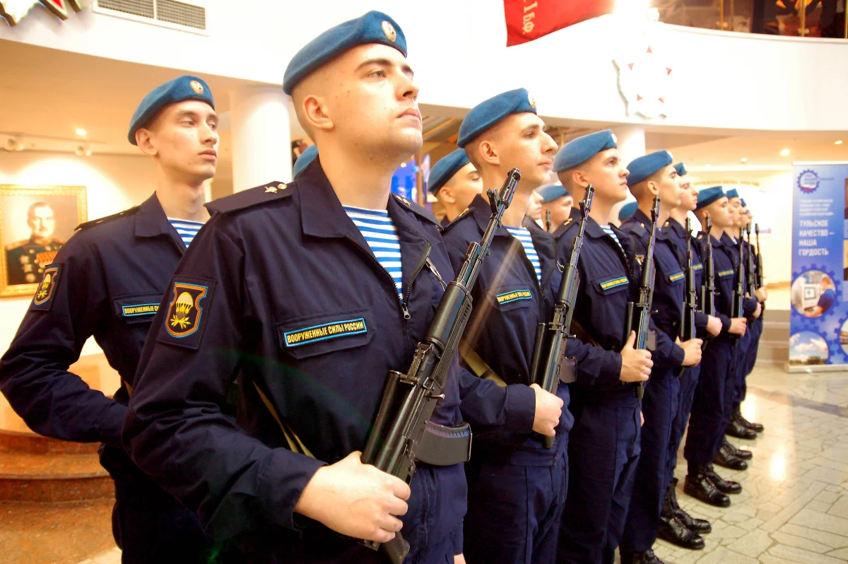 Сегодня в музее оружия прошла церемония принятия присяги новобранцами, пополнившими научно-производственную роту 106-й гвардейской воздушно-десантной Тульской Краснознаменной ордена Кутузова дивизии