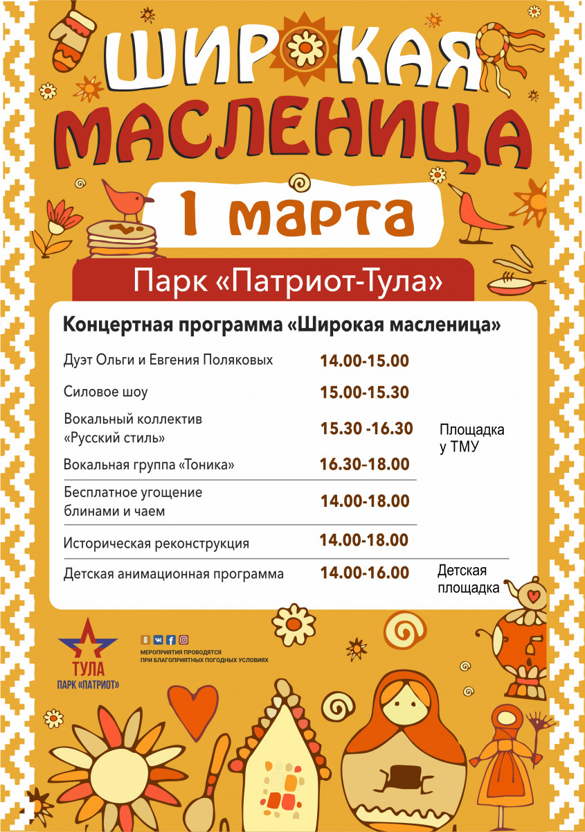 Публикуем подробную афишу Масленицы в парке «Патриот-Тула»