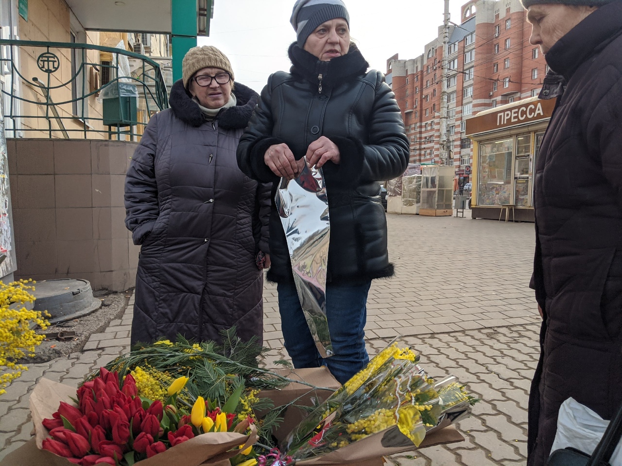 — Не, это ж совсем не местные цветы. Это из Ростова, а доставка, сам понимаешь, тоже стоит недешево, — говорит он. — Зато вот мимоза свежайшая, из Азербайджана. Веточка от 200 до 300 рублей, зато какая красота!