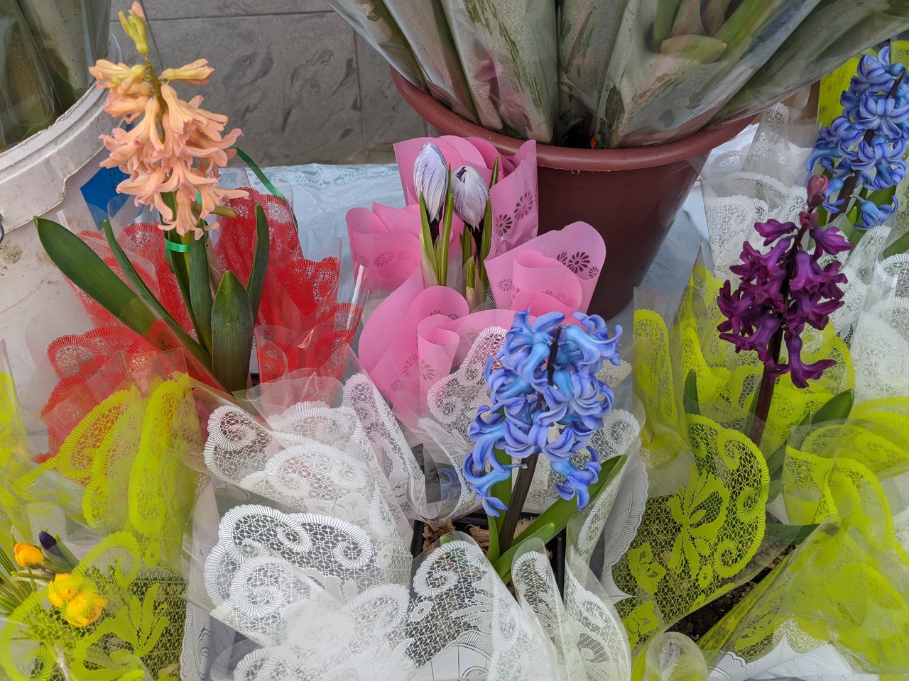 В последнее время появилось еще одно оригинальное предложение, в основном, в магазинах-сетевиках — сезонные цветы в горшочках с землей (крокусы, например) или просто луковичные в банке с питательным раствором. Цена за набор из пяти тюльпанов, например, — всего 150 рублей. Сейчас многие из них уже стоят на бутонах.