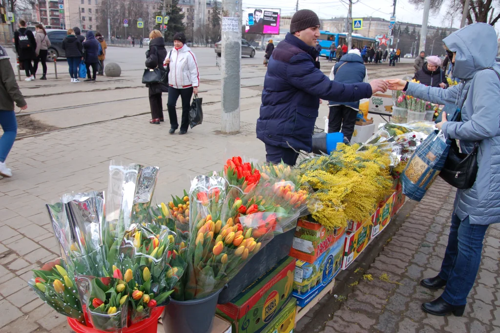 По утверждениям цветочников, в предпраздничные дни продажи подскакивают в десятки раз! Как рассказала нашему корреспонденту одна из продавцов, представившаяся Валентиной, после весеннего праздника на работу можно смело не выходить почти месяц. Продажи, как лавинообразно подскакивают на несколько дней, так и аналогично «проваливаются» потом на довольно долгий срок — цветы покупают разве что на юбилеи и дни рождения. Даже типичные «юноши со взором горящим» не торопятся одаривать букетами своих возлюбленных.