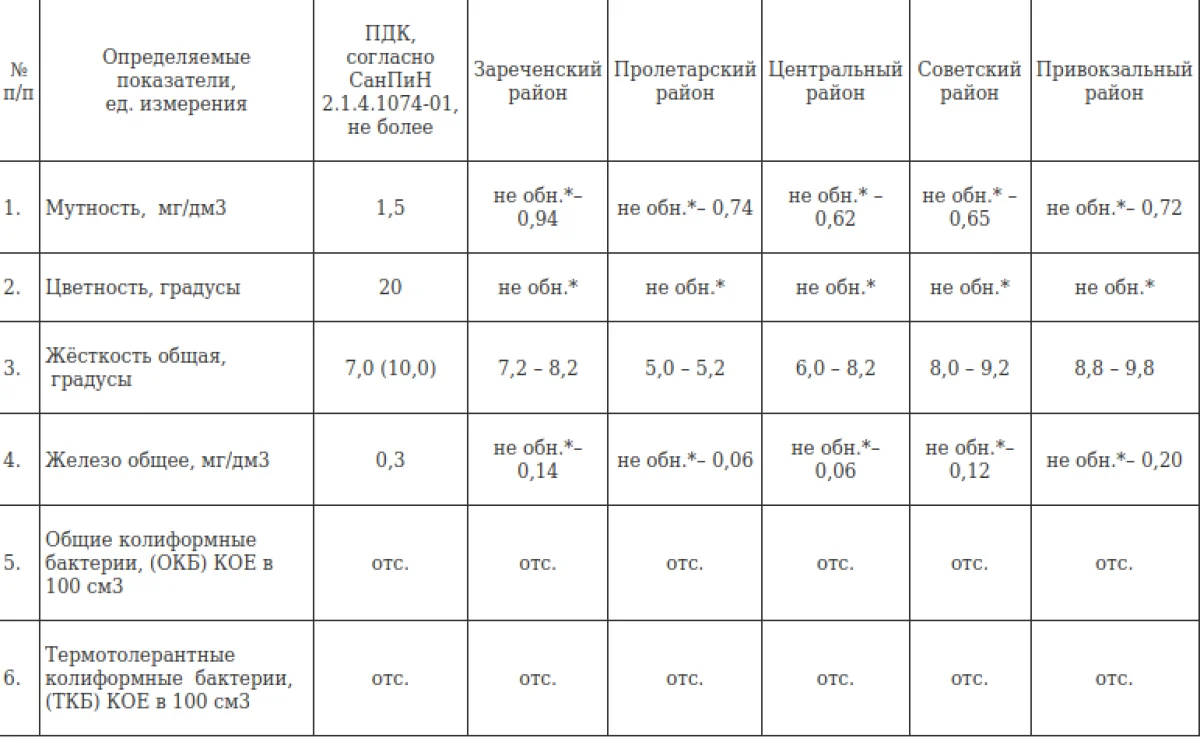По показателю железа «отличились» Привокзальный и Зареченский районы города.