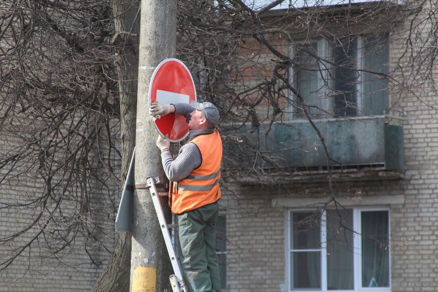 Помимо этого, дороги Новомосковска еще и обновляются новыми дорожными знаками. Также, от вандальных надписей очищаются и старые знаки, подкрашивают стойки и выравнивают поврежденные металлические поверхности.