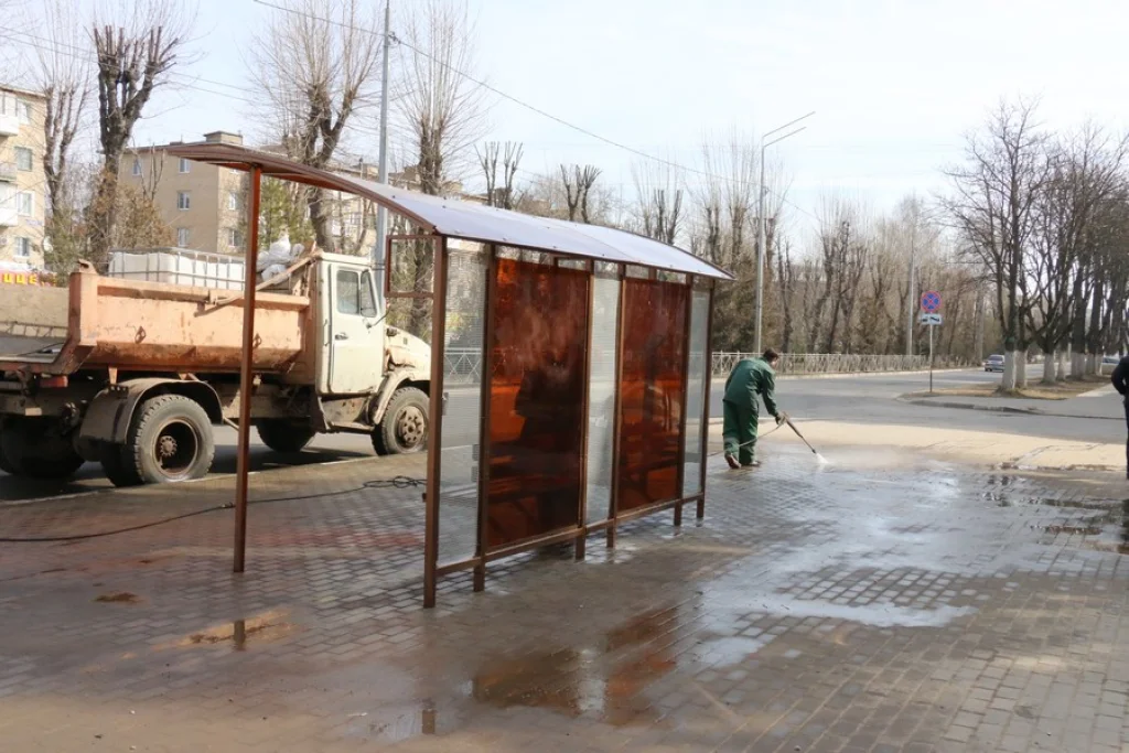 В Новомосковске для туляков антисептиком отмывают остановки и очищают дорожные знаки