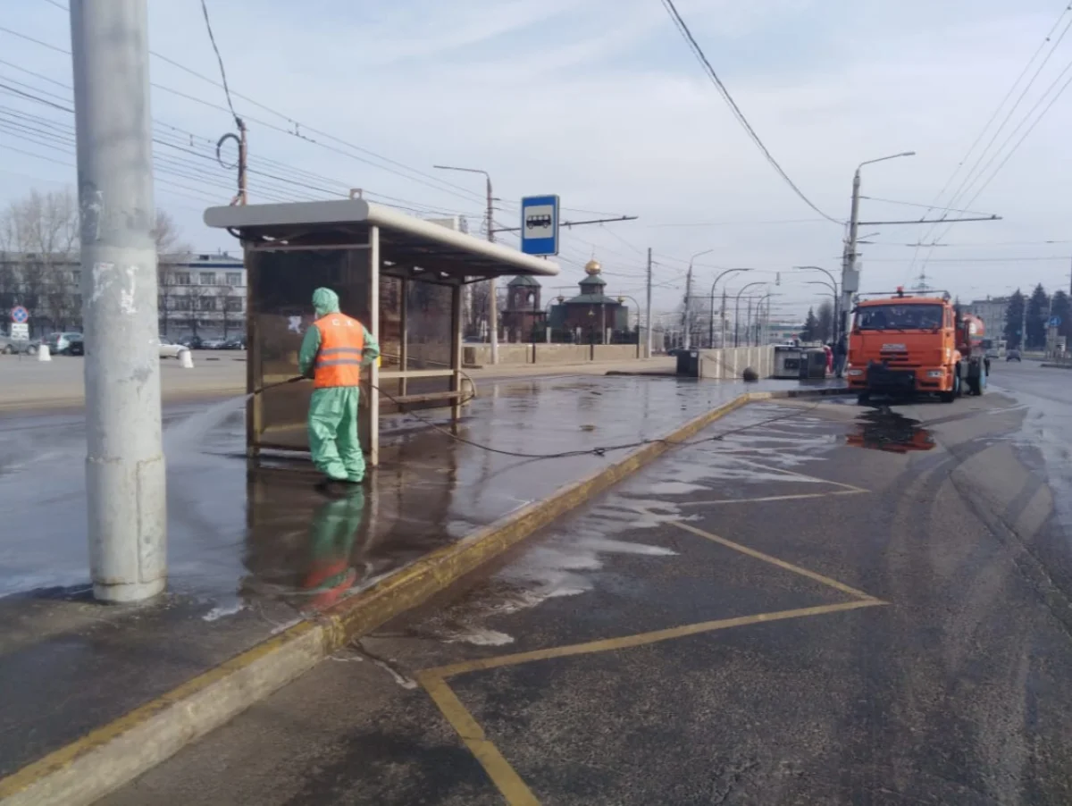 С сегодняшнего дня, с 30 марта, в Туле начали “обеззараживающие” процедуры для общественных остановочных павильонов и опор освещения. С утра пораньше работники на спецтехнике поливали улицы Тулы различными дезинфицирующими средствами.