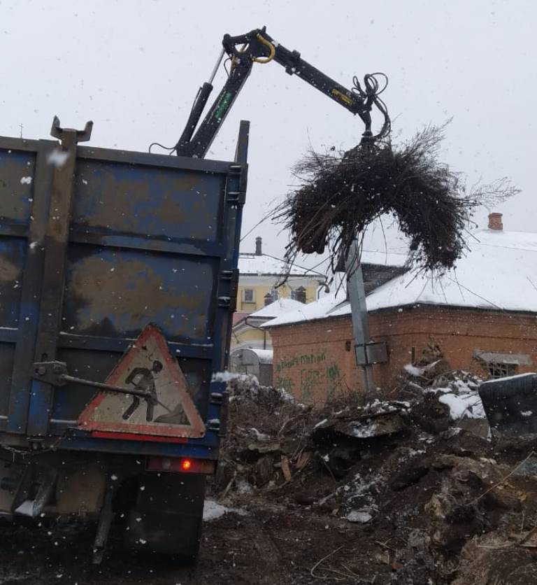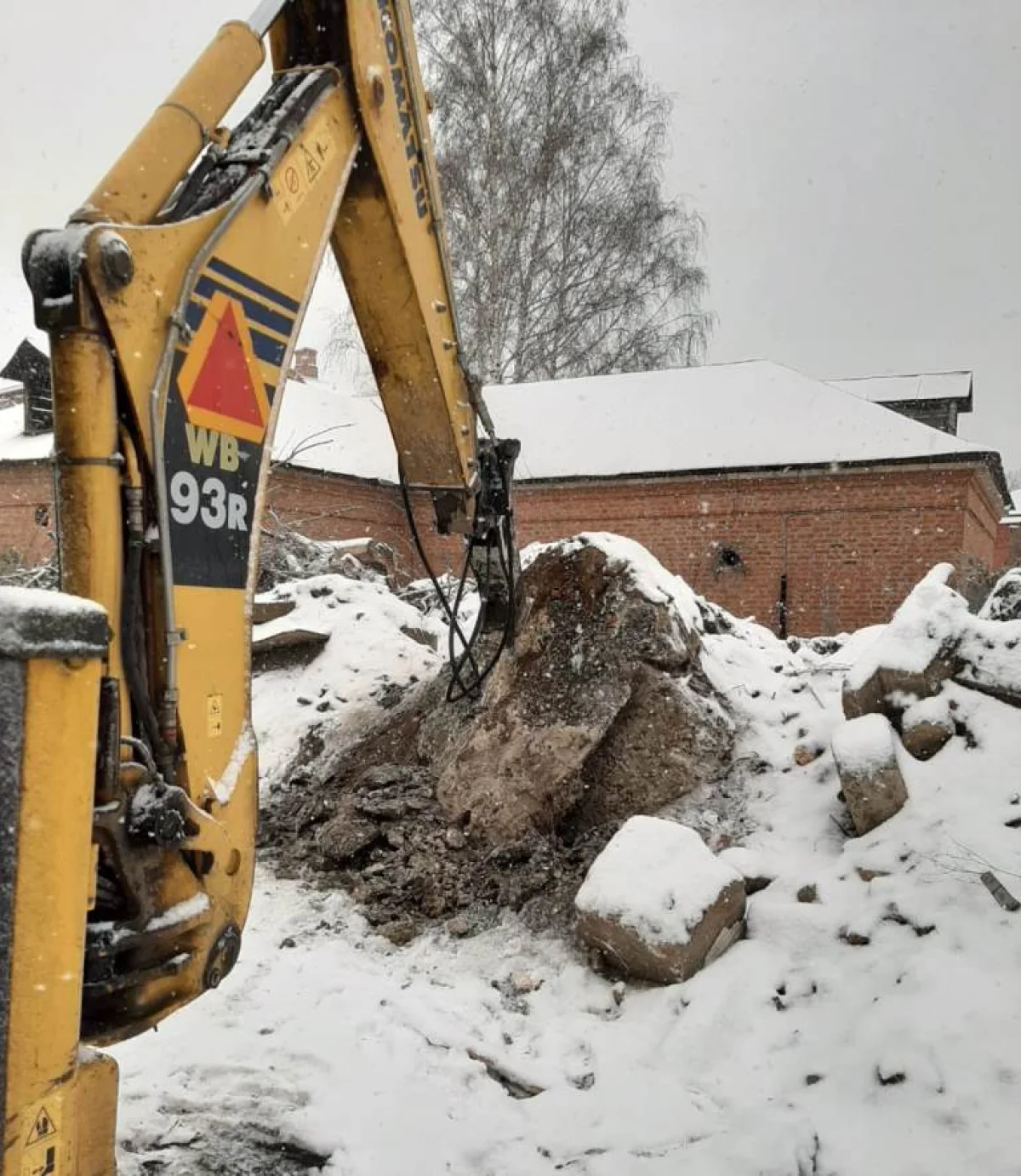 В уборочных работах задействована спецтехника: гидромолот, погрузчик, ломовоз и два самосвала.