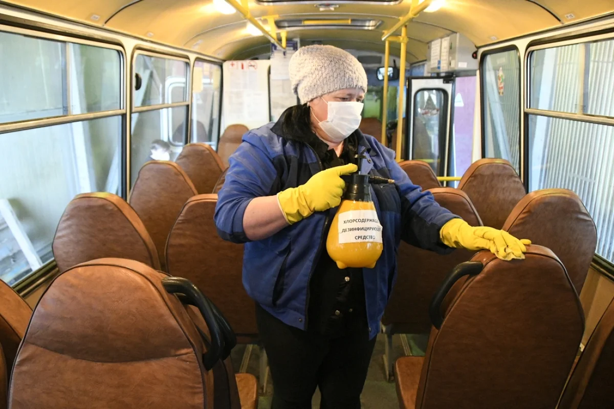 Обрабатывают транспорт каждый раз перед выходом на рейс, после высадки пассажиров на конечных остановочных пунктах, а также после завершения работы маршрута.