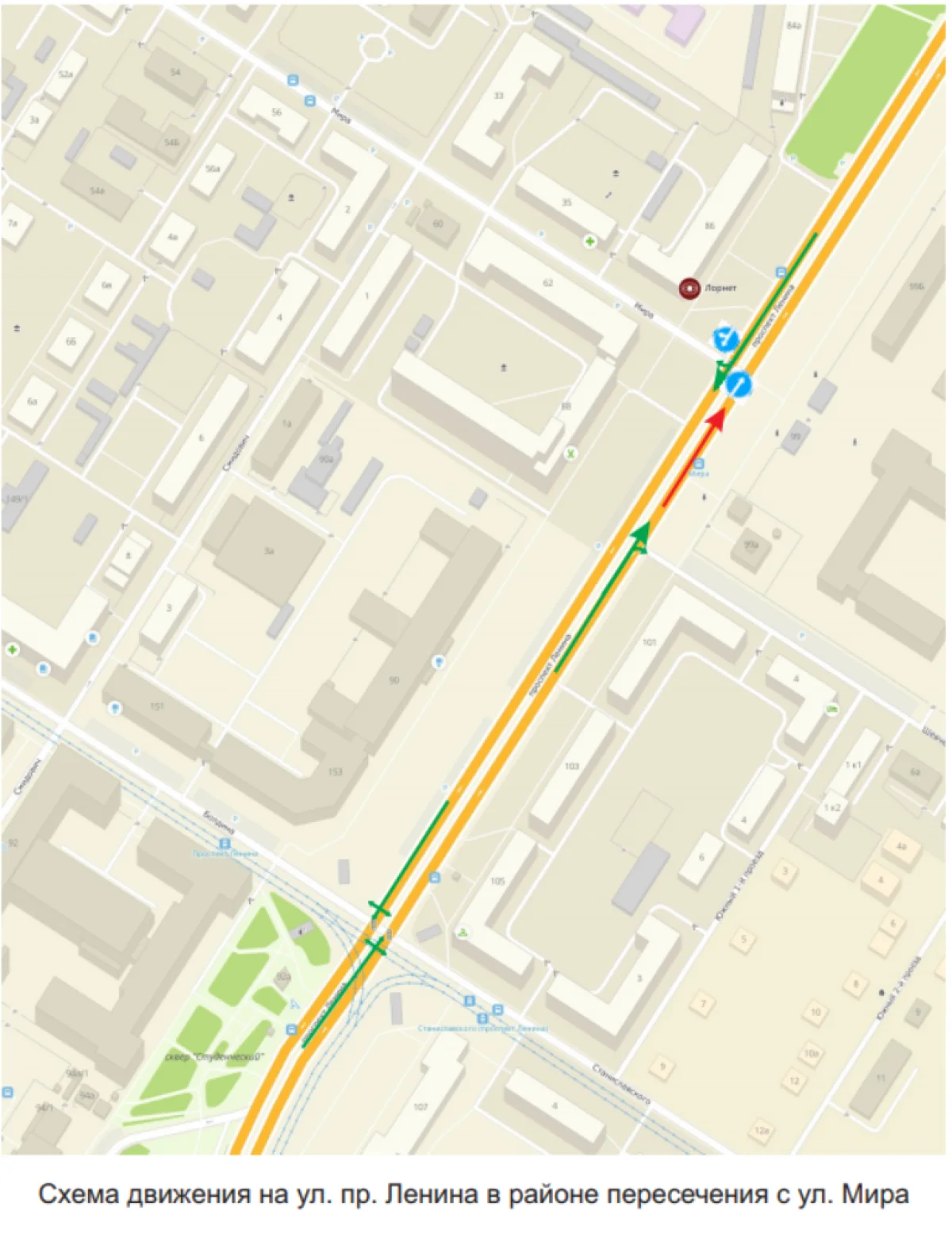 Решение об изменении схемы движения на пересечении пр. Ленина и ул. Мира городская администрация приняла для ликвидации условий, которые приводят к возникновению ДТП.