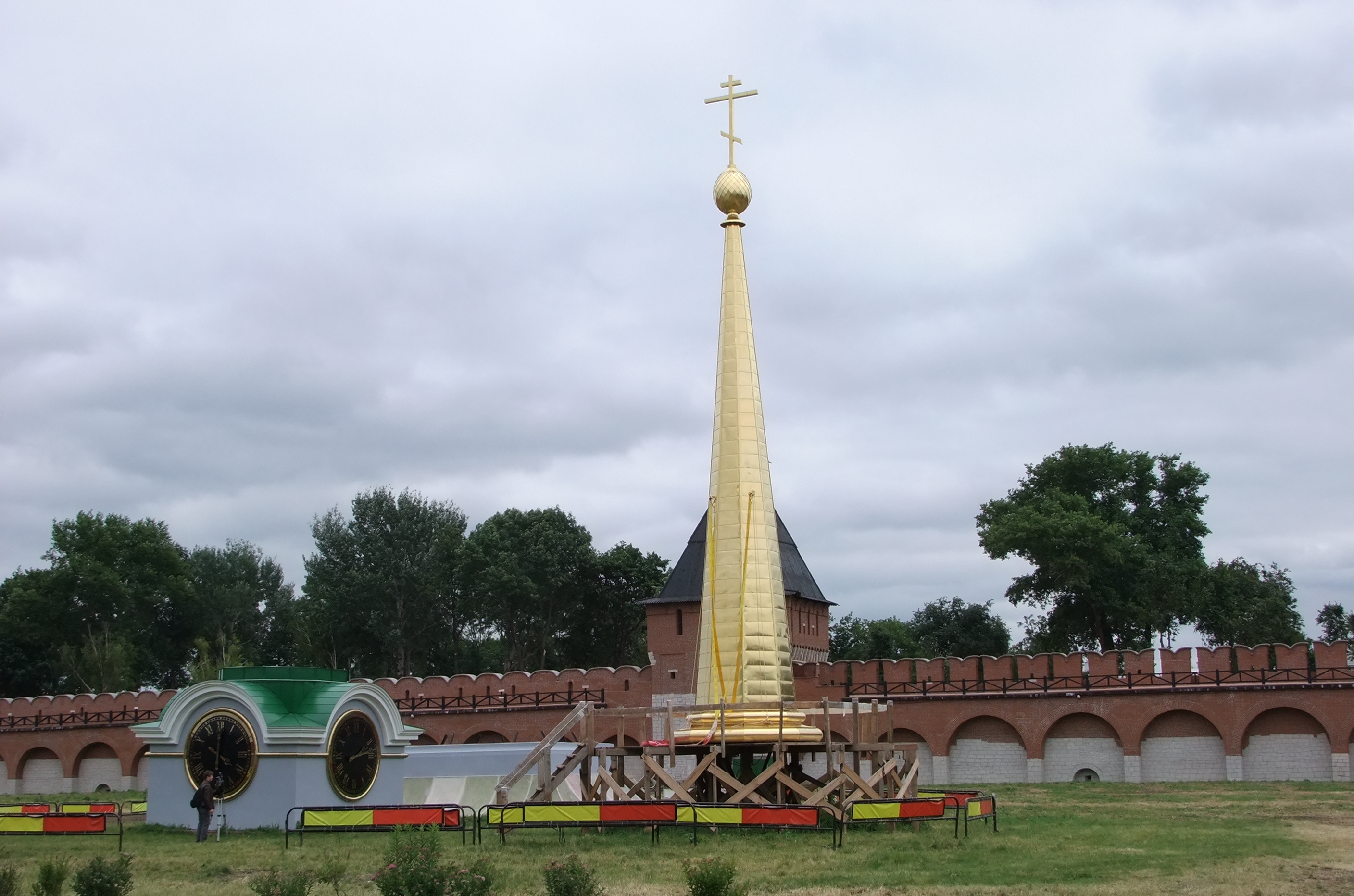- Поднимать шпиль будет специализированный вертолет К32А, который сейчас работает в Сочи. Но у них произошли какие-то неполадки с вертолетом, которые уже устранили. Завтра днем будет известно, когда он вылетит к нам, в Тулу. Бог даст, на неделе все