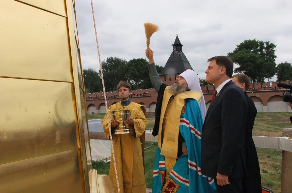 В сердце Тулы митрополит Алексей освятил шпиль колокольни Успенского собора