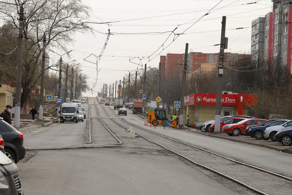 На ул. М. Горького сейчас выполняются работы на межрельсовом пространстве — укладывается выравнивающий слой асфальта. Параллельно ведется обустройство пешеходных дорожек. Работы на этом объекте должны завершить к середине мая.