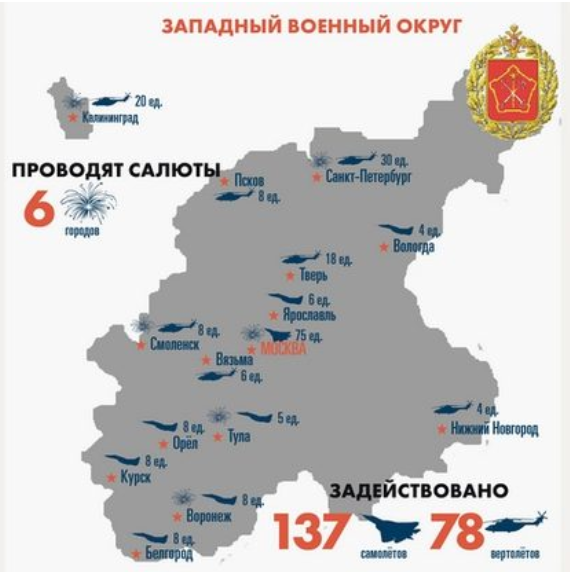 Так, опираясь на данные карты, в День Победы тульское небо примет у себя 5 единиц самолетов-истребителей. Вечером же туляков и гостей города ждет праздничный фейерверк из 12 артиллерийских орудий и 2 салютных установок. Продолжительность салюта - 10-15 минут, за это время прогремят 30 залпов.