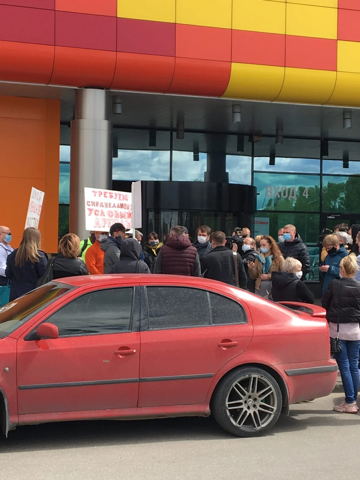 С надписями «Долой арендное рабство», «Требуем справедливых условий аренды» и «Нет арендному рабству» предприниматели кричат о помощи и взаимопонимании в сложившейся непростой обстановке. По словам очевидцев, арендаторы ТРЦ отказались снижать арендную плату в период закрытия всего торгового центра, а предпринимателям из-за отсутствия работы и прибыли нечем платить полную сумму за свою размещенную в торговом помещении точку.