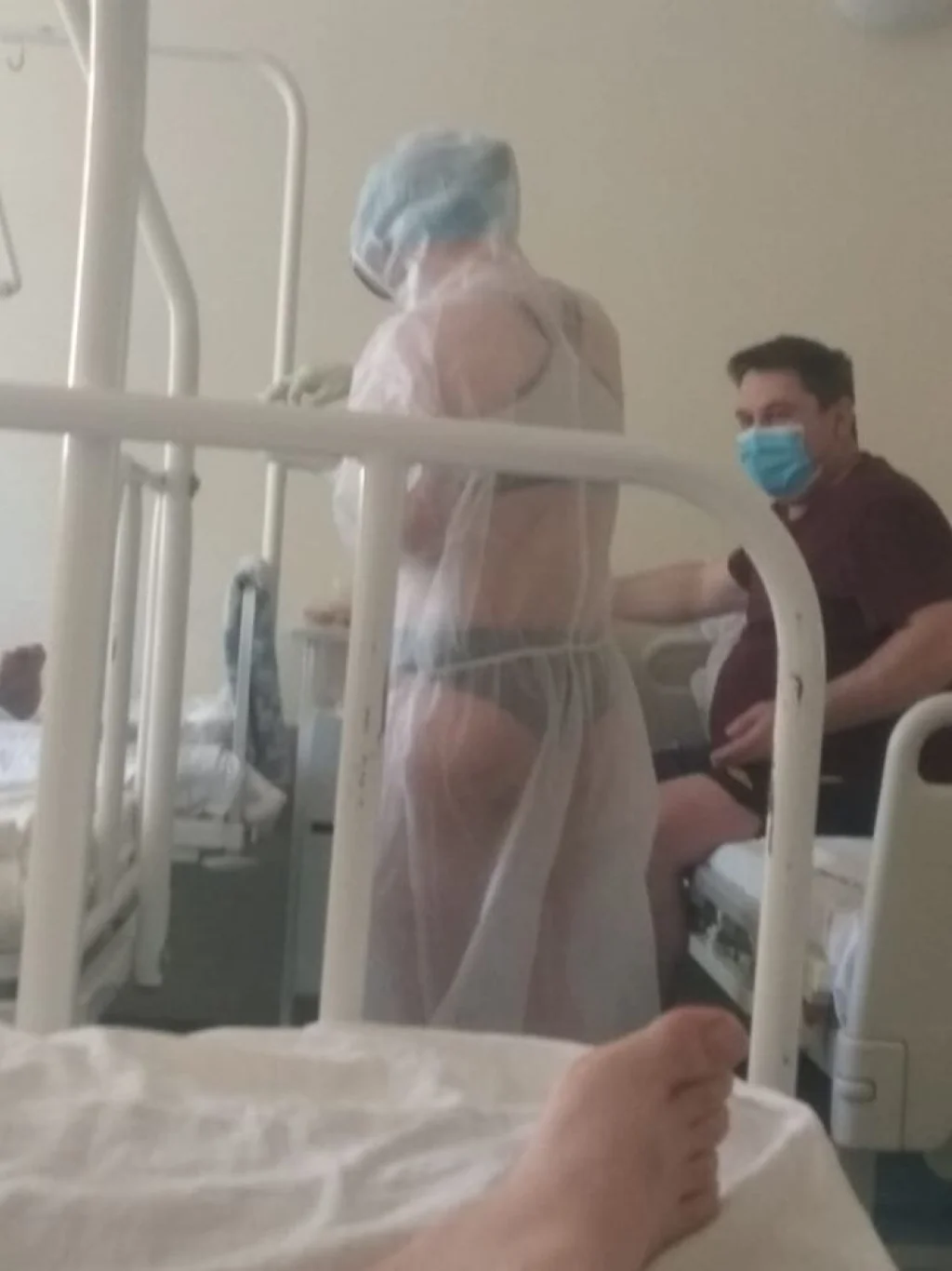 Новость о “полуголом конфузе” в палатах областной клинической больницы прогремела 19 мая в одном из местных пабликов ВКонтакте. Спасаясь от предстоящей жары в защитном костюме, девушка решила надеть купальник под него, но не учла его просвечивающую способность. Именно это упущение и придало огромную славу этому случаю. Девушку поддержали не только земляки, известные личности, политики и иностранцы, но и художники, которые создали интересный арт с образом медика.