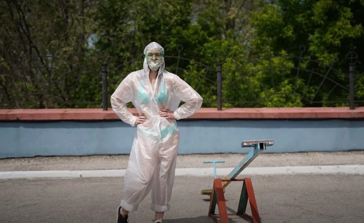 Жители Самары поддержали тульскую медсестру, надев поверх своих купальников защитные костюмы