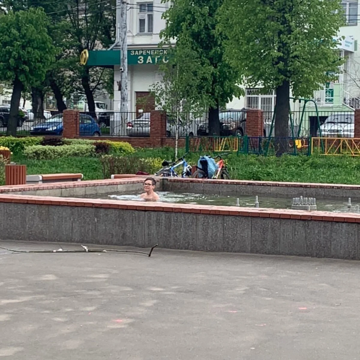 В социальной сети ВКонтакте туляки поделились фотографиями, где один из смелых и юных жителей города открыл купальный сезон. Однако, в качестве водоема молодой человек решил использован не пруд или речку, а обычный городской фонтан.