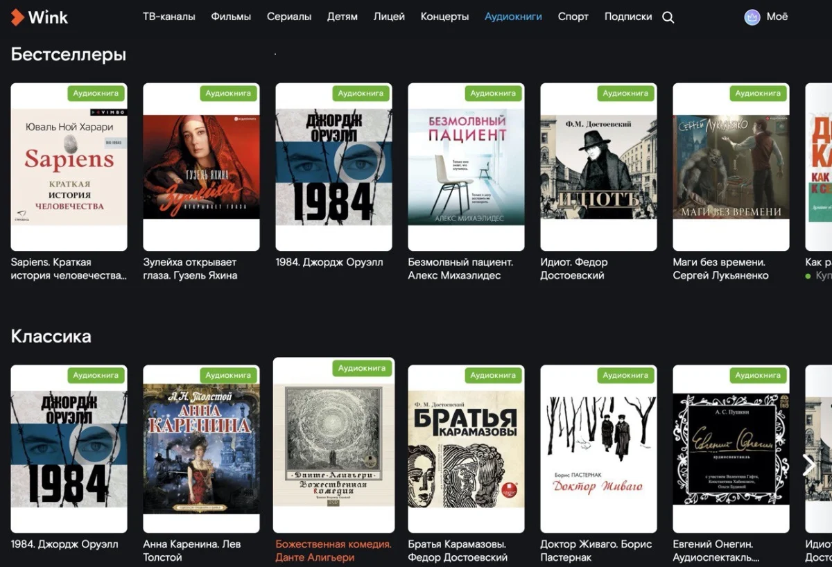Аудиокниги стали еще одним дополнительным сервисом в Wink наряду с караоке и облачными играми, который не связан напрямую с ТВ и видеоконтентом. Таким образом, Wink становится интегрированным поставщиком разнообразного контента для подписчика.
