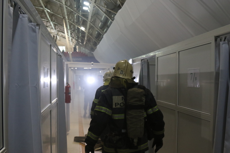 В инфекционном госпитале в манеже тульского "Арсенала" прошли пожарные учения
