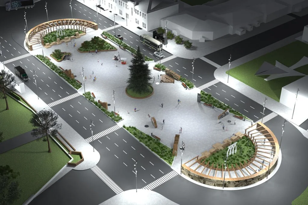 Так в работы по благоустройству войдет развитие транспортной и пешеходной инфраструктуры вокруг площади. Сама же площадь превратится в островок, на котором расположатся арт-объекты, уличная галерея со сменной экспозицией. Также произойдет и озеленение территории. Работы планируют завершить до конца 2020 года.