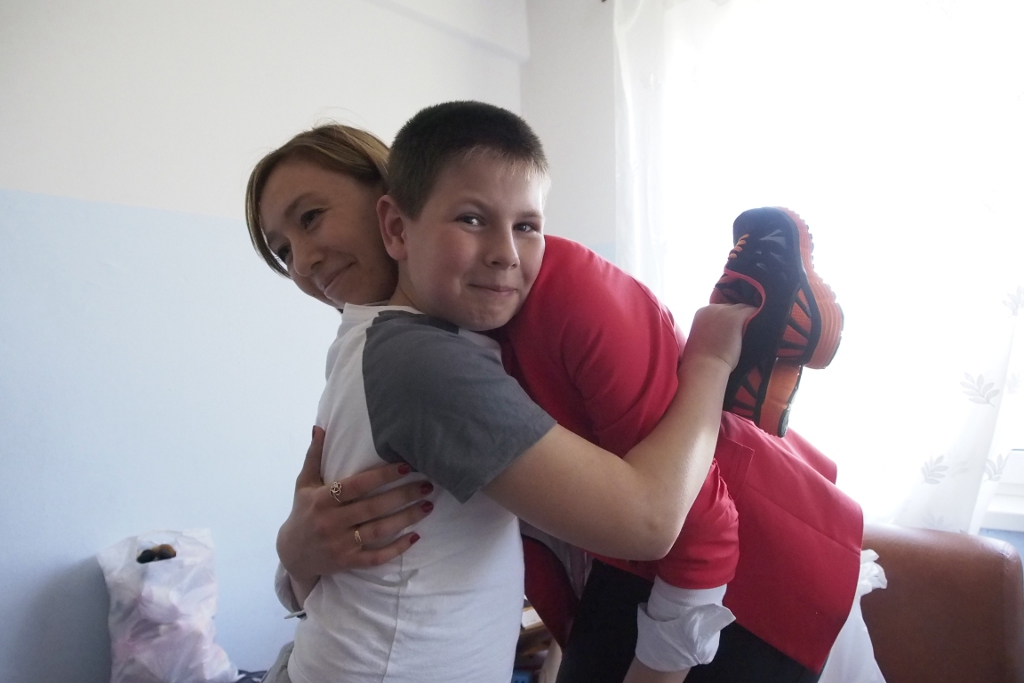 В одном из центров живет семья Киреевых. У них двое детишек – семимесячная Вика и одиннадцатилетний Даниил. Мы узнали, что у малышки нет теплых вещей, а у Дани только летние сланцы и привезли им все необходимое. Благодарности не было предела. Даниил, увидев новые кроссовки, кинулся скорее обнять «дарующего».