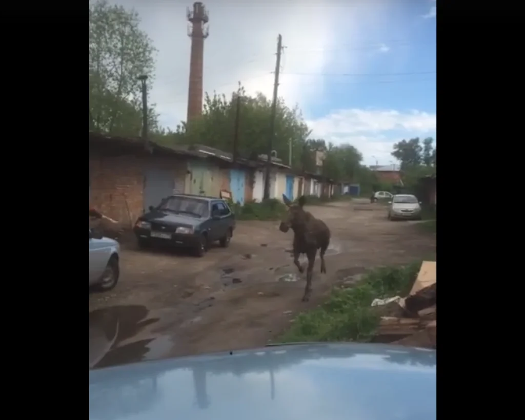 Под Тулой очевидцы засняли бегущего лося в гаражах