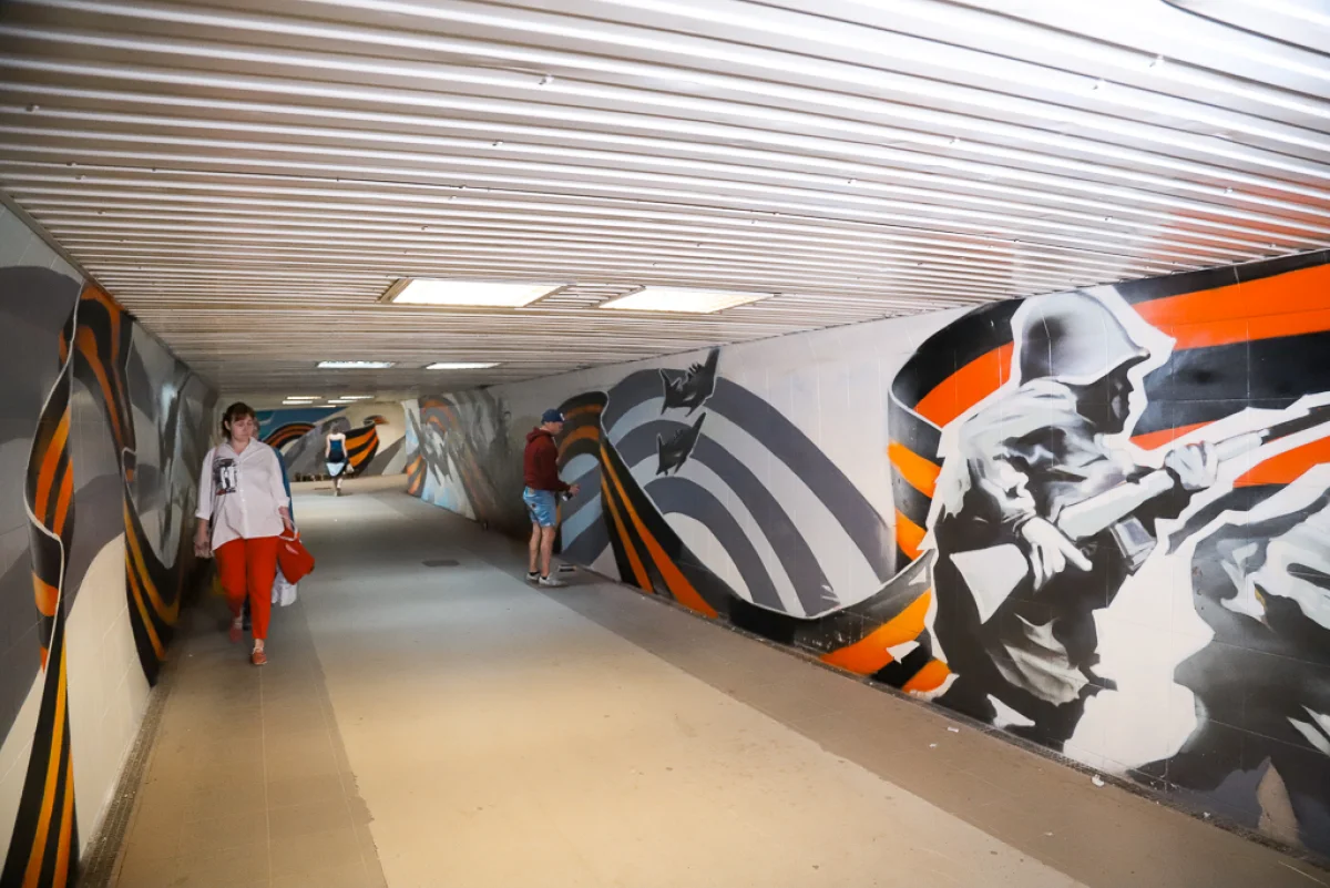 На перекрёстке проспекта Ленина и улицы Станиславского в Туле ведётся реставрация граффити рисунков, посвящённых ВОВ. Сами изображения нанесены с помощью баллончиков на стены подземного пешеходного перехода.