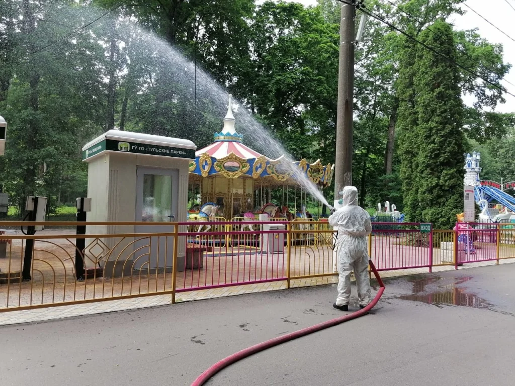 В Центральном парке Тулы продезинфицировали аттракционы
